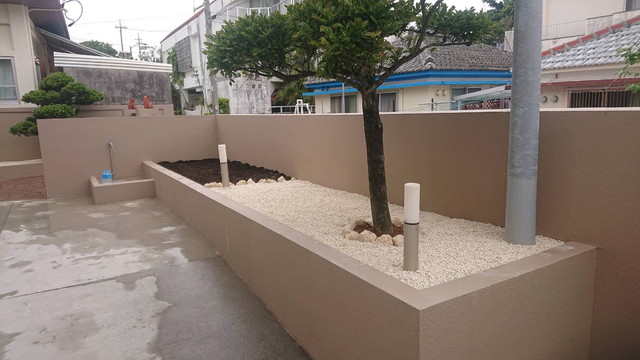 砂利を敷き詰めることにより、雑草が⽣えにくく、⽣えた雑草も抜きやすくなりお庭の⼿⼊れが楽になります。